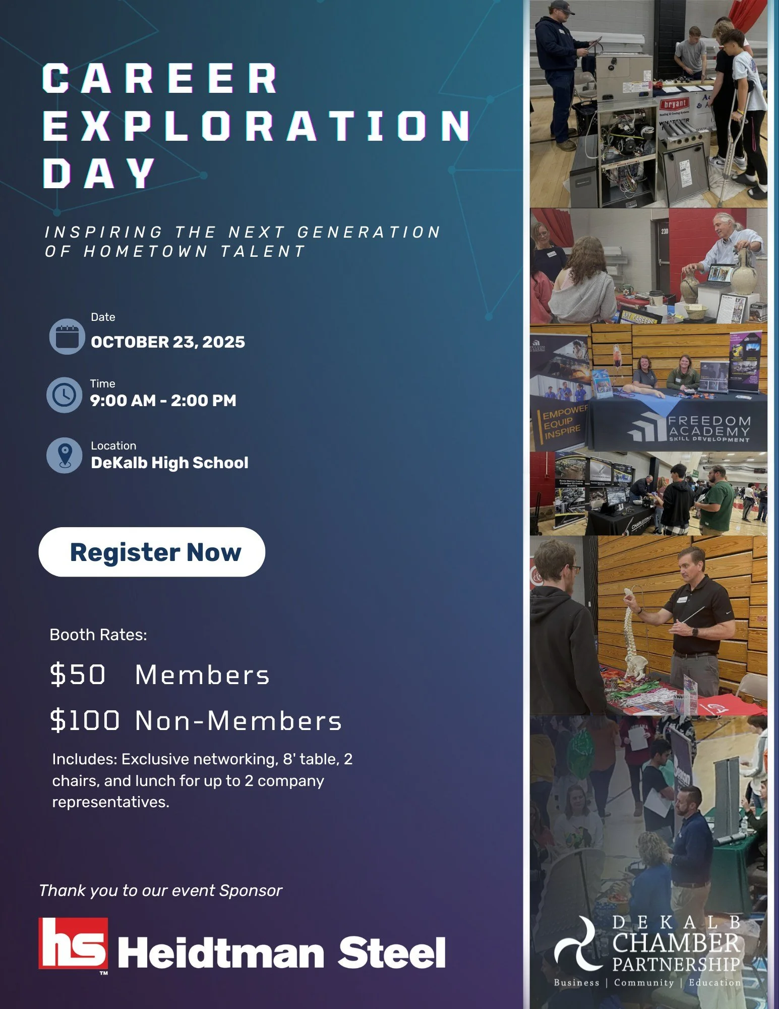 Career Exploration Day is an expo-style event when DeKalb County students (primarily high school juniors and seniors) get to interact with a wide variety of career options local to DeKalb County.